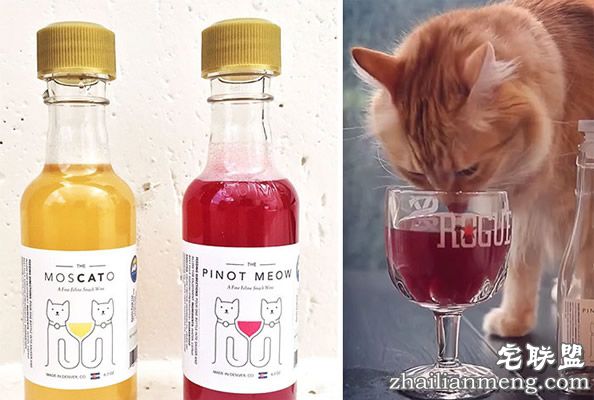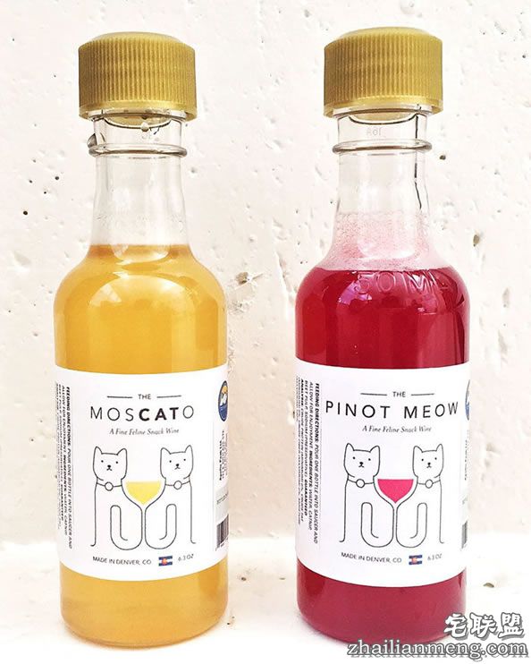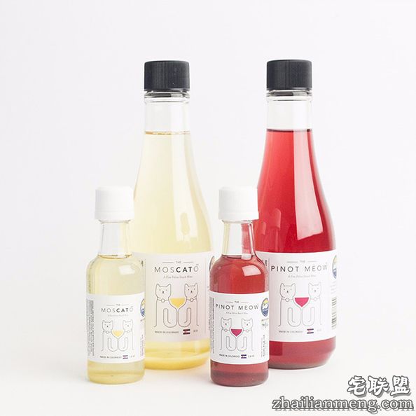 这种猫酒有2种口味,MosCATo(黄色)和Pinot Meow(红色),适合所有年龄段的猫咪。