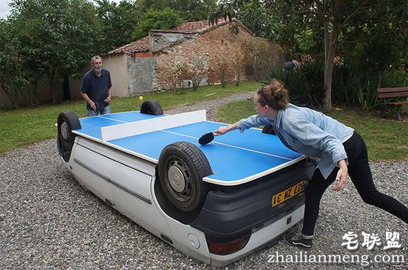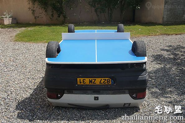 废弃的汽车原本该进回收场的,来自法国的艺术家Benedetto Bufalino 却将它变成了一辆乒乓球桌。