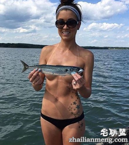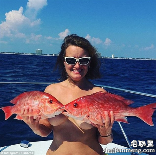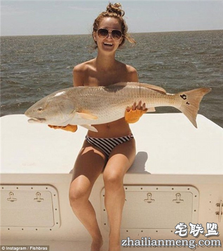 “鱼胸罩”也就是这些外国妹子把鱼捞上岸以后,会跟猎物合照。不过,拍照的时候,不知道为何也要把身上的比基尼脱下来,直接拿鱼遮奶。