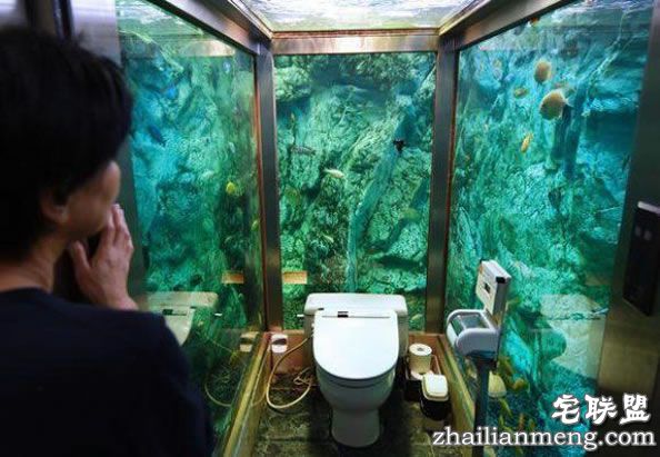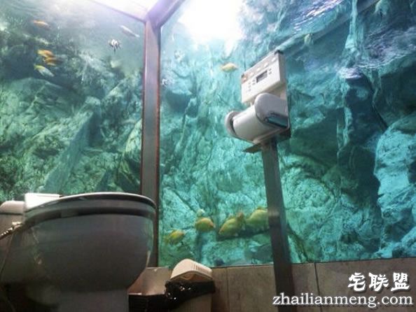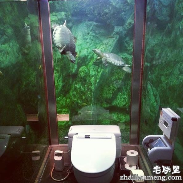 这座别有情调的厕所,周围约有300条鱼以及乌龟优游自在地畅游左右,让女顾客体验与鱼共厕的奇幻美感。这家餐厅的主人在厕所的花费高达3000万日元,且自从厕所新建好后,他表示,光是想体验厕所,慕名而来的顾客就增加4倍之多。只可惜目前仅只于女性使用,男厕的设计与一般无异。