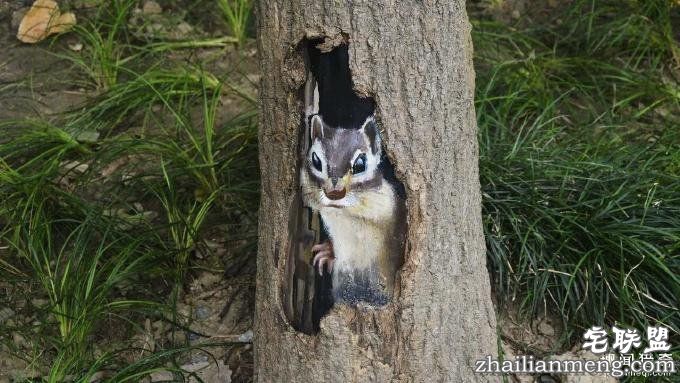 这些抹不去的伤口往往不大美观(其实就是树里面的丑逼影响市容了),于是墙绘艺术家 Goomrr 就发挥自己的特长,将他看到的一些树洞和树干上的疤痕当成画布,画上了一些非常可爱的小动物。许多人路过都忍不住要停下来多看几眼!!!