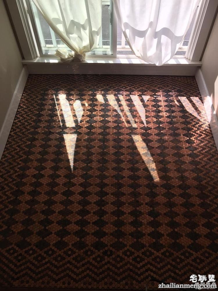 整个工程花了好几个月才完成,耗时但她相当满意,这片货真价实的钱币地板,用上了1万3千个1分钱硬币好像很多,其实等于130元美金,这用钱铺出来的地板,是不是比想像中便宜?搞不好你家的木地板,比这片钱地板还贵呢!