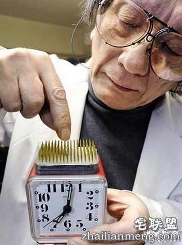 带刺的闹钟,是日本发明家川上贤司发明,这个能让人立刻清醒的闹钟,这样,妈妈就不用担心孩子上学迟到了。