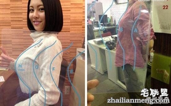 左边的绘有胸部尺寸的透明卡片,与测量者比对就能知道其胸围是多少;右边的更神奇,妹子们只需要像赛场上经常出现的胸夹手机那样,把手机塞进胸口,App就能测量出胸围数据,妹子们再也不用担心找不准内衣尺码了。