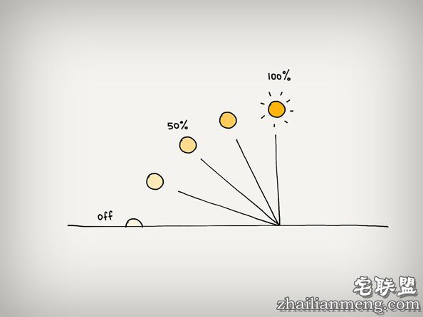 但当90时太阳为最高峰的状态,整个灯也就变成了直立状态,光也是最明亮的时候,反之即为回落状态。