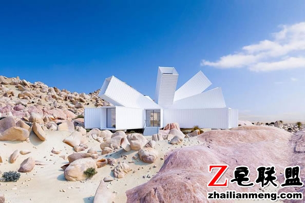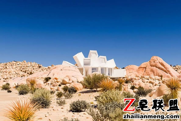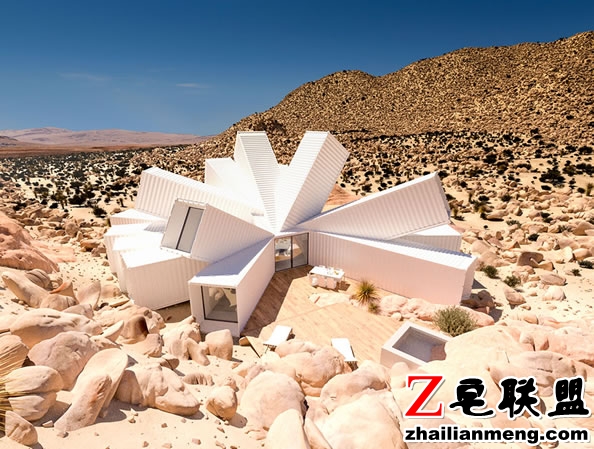 从远处看“Joshua Tree Residence”的视角像盛开的花朵,又有一种异世界感。